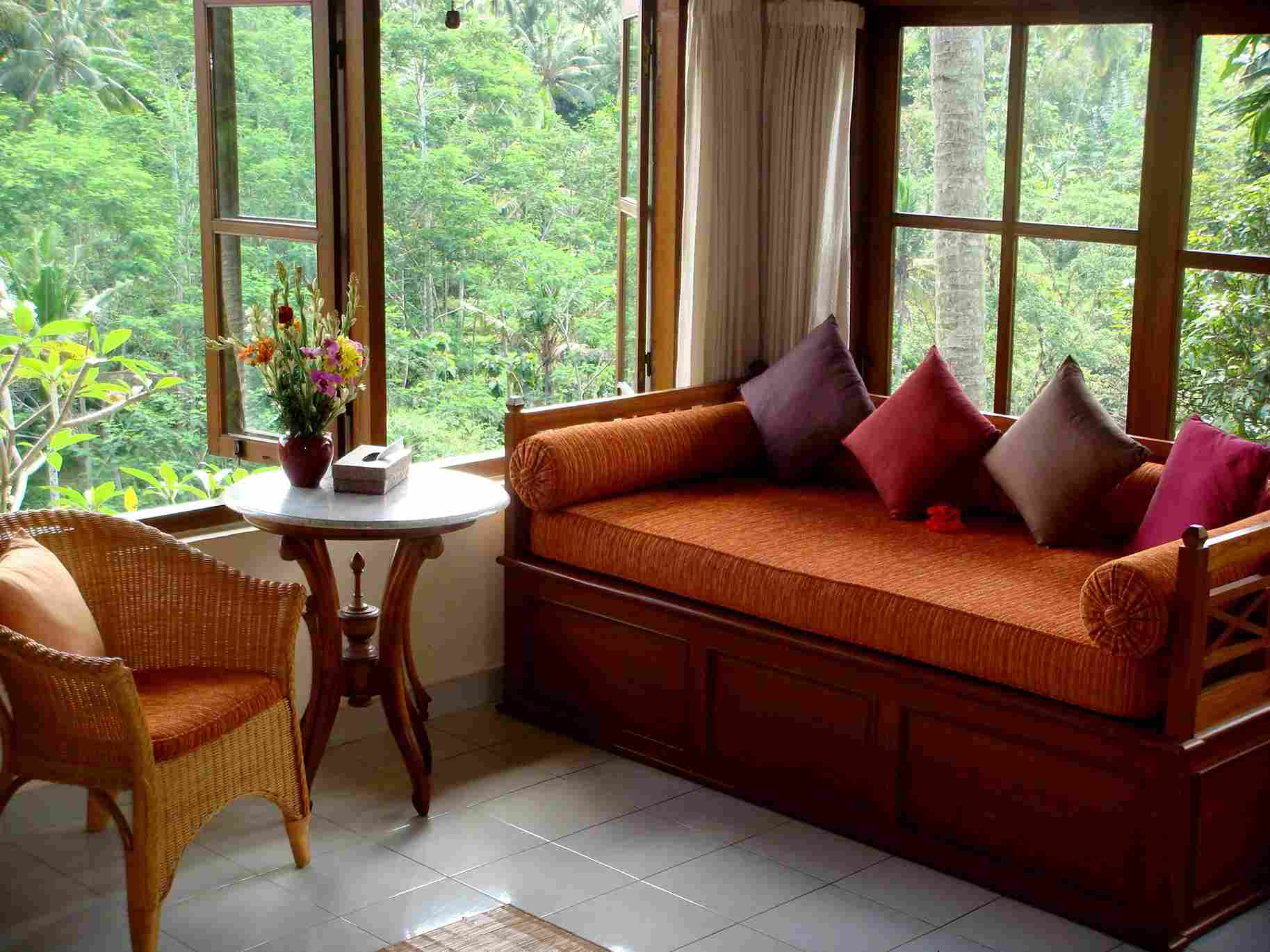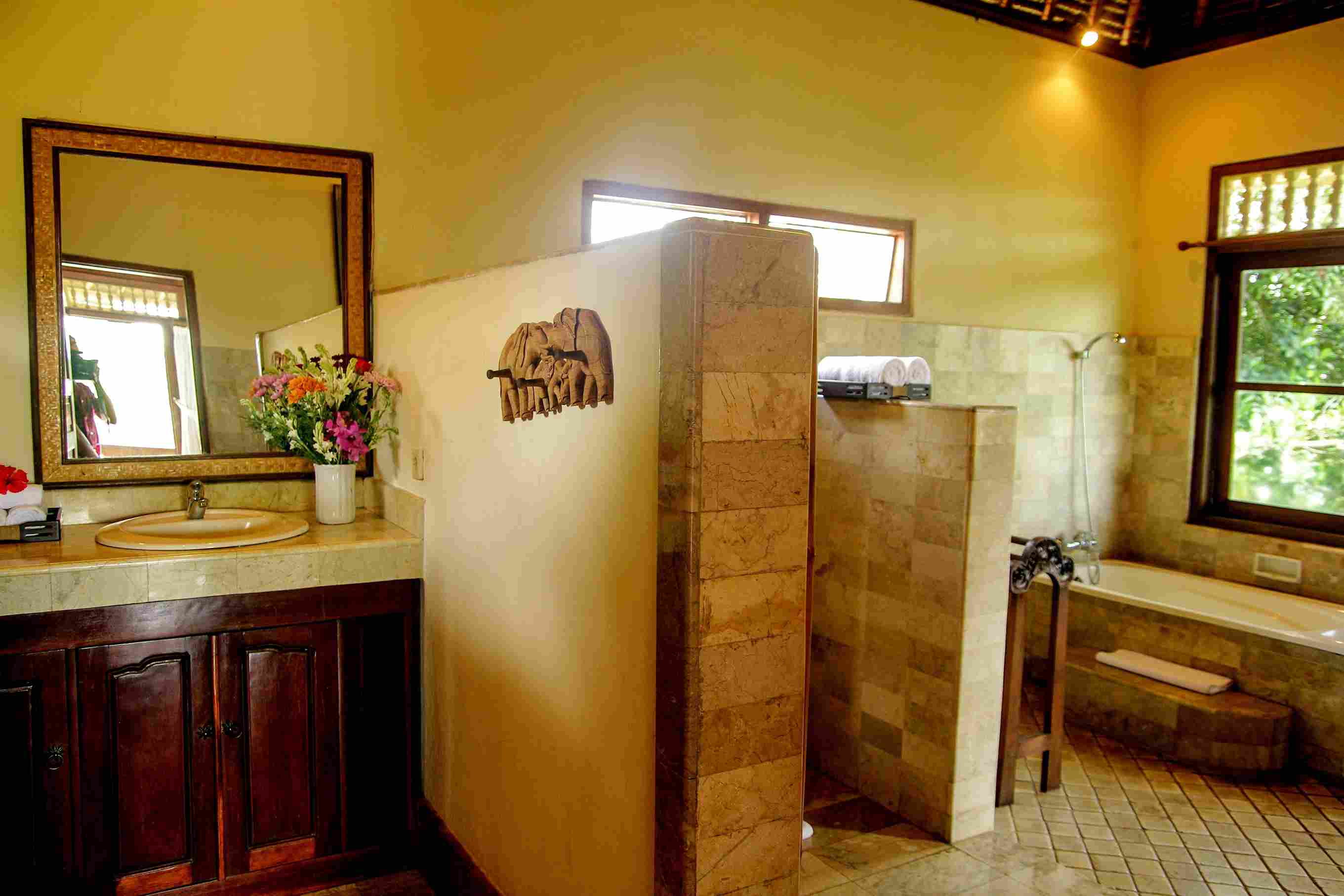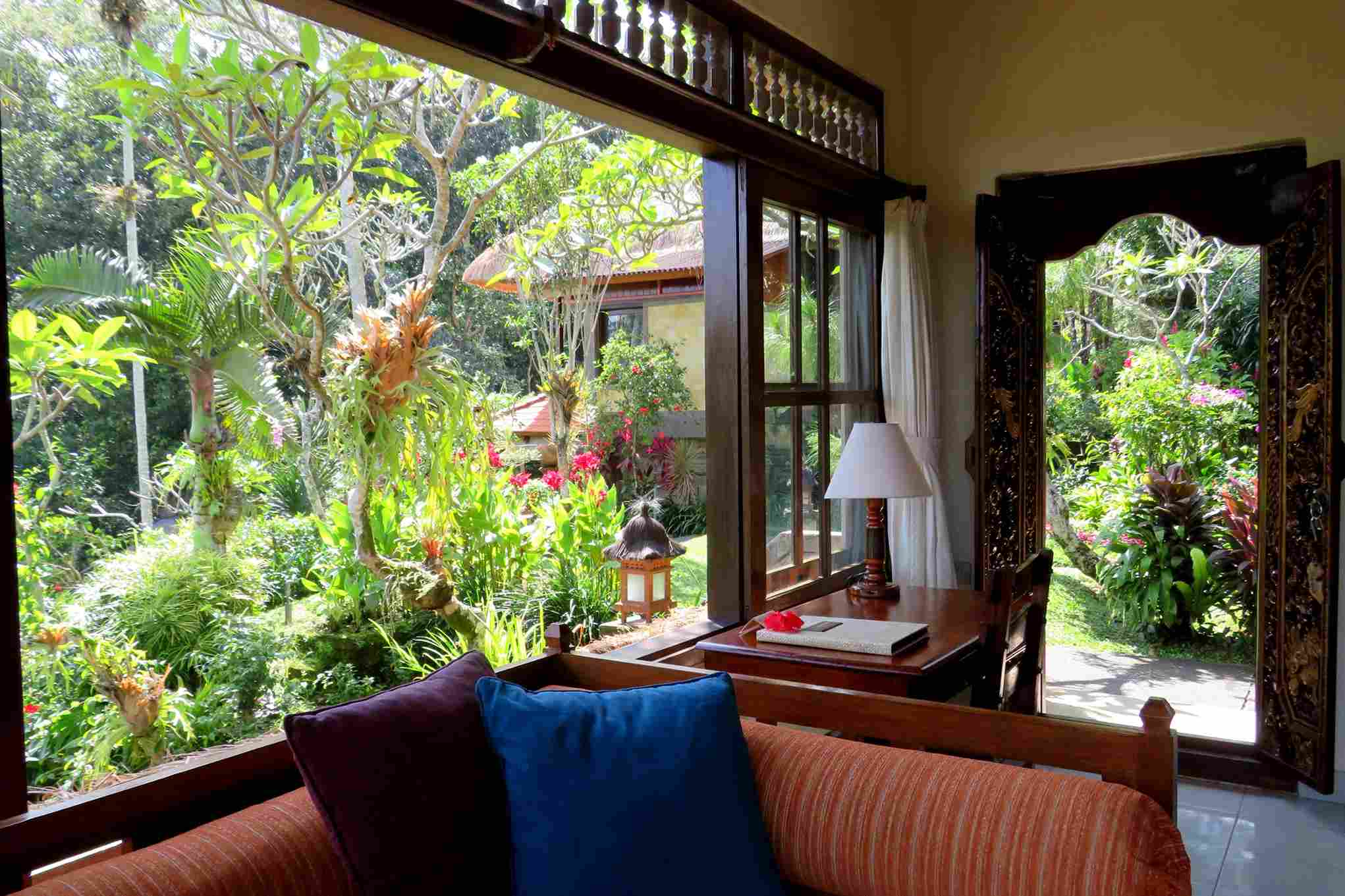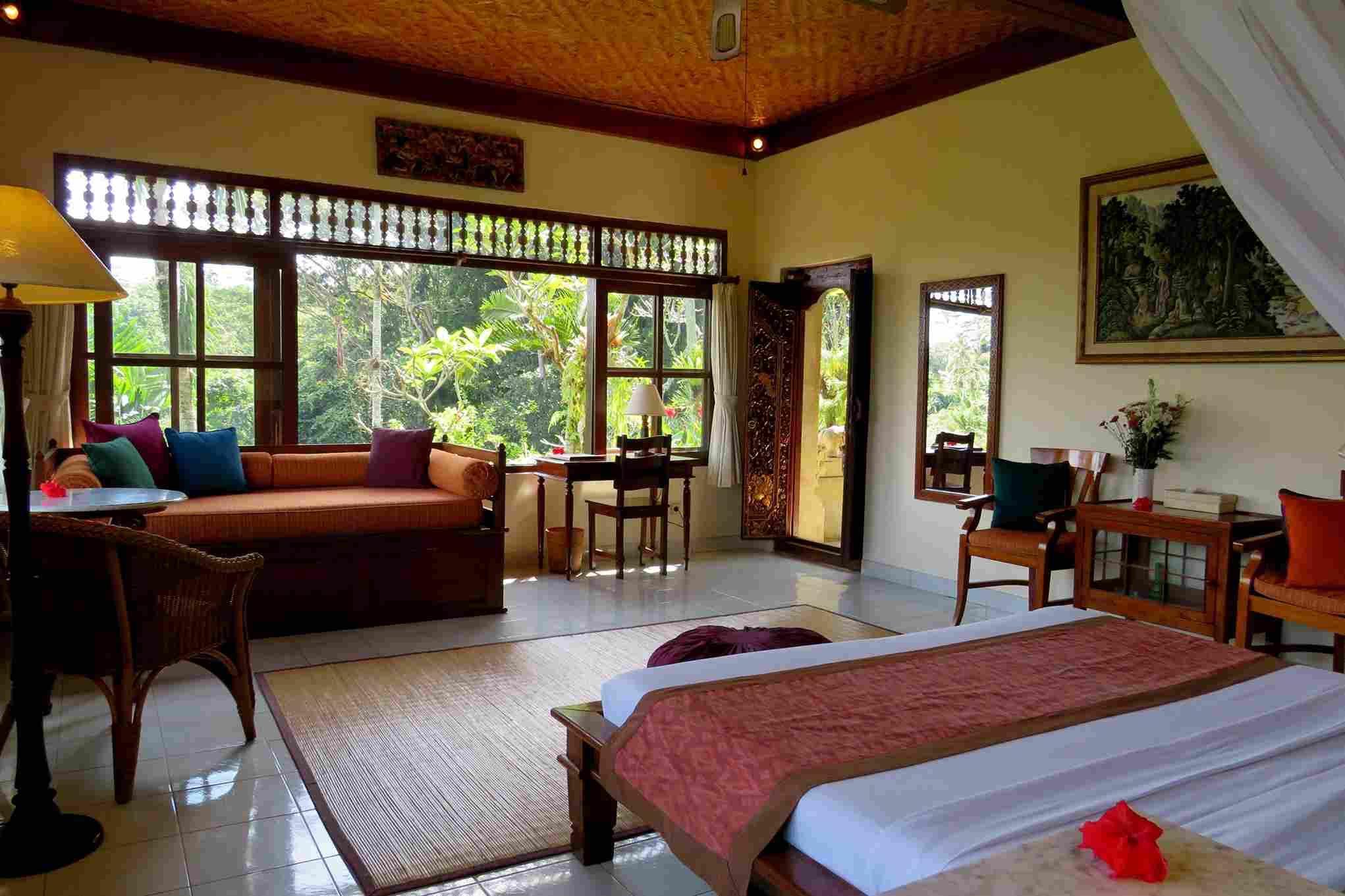 Our Deluxe Valley View Rooms at Alam Indah with views out to the sacred land of the Monkey Forest and Wos River valley invite you relax and absorb the serene atmosphere. Each room is appointed in their own unique style embracing traditional Balinese architecture with modern amenities. Bedrooms have air-conditioning as well as ceiling fans. Bathrooms have a bathtub and shower. Venture down through lush gardens for a refreshing dip in our pool overlooking the valley.
