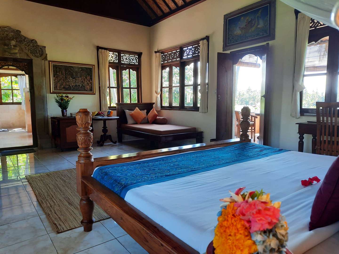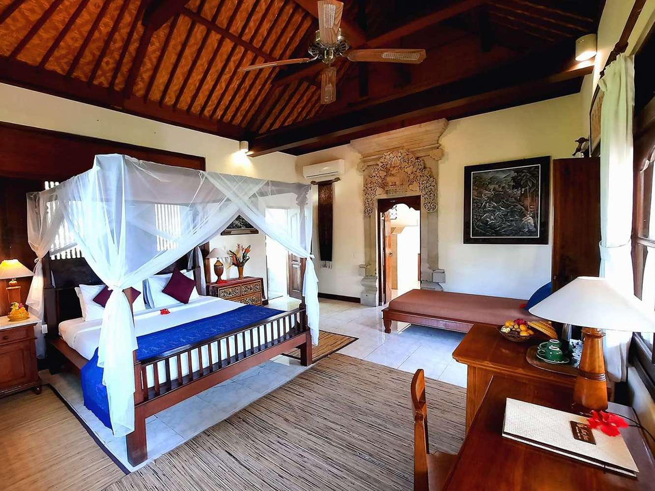 There are six Grand Deluxe Rooms at Alam Jiwa, set in three separate bungalows- each with two rooms with private entrances. Each room is individually appointed in its own style embracing traditional Balinese architecture with modern ammenities. All rooms have air-conditioning as well as ceiling fans. Bathrooms all have an indoor bathtub and an open-air shower.