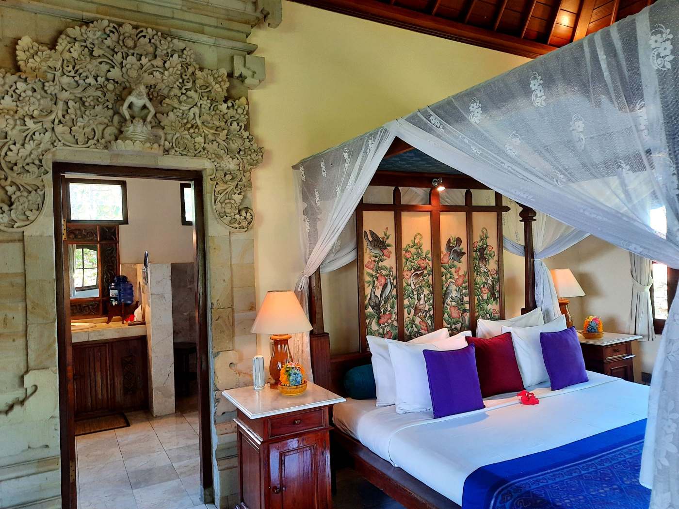 Two One-Bedroom Suites at Alam Jiwa called Merpati and Casuary are set in one building- each room with private entrance. Rooms are beautifully appointed in its own style embracing traditional Balinese architecture. Stone carvings gracing the walls were crafted by Bapak and local artisan friends. Bedrooms have air-conditioning as well as ceiling fans. Luxurious bathrooms have an indoor bathtub and an open-air shower. Spacious verandas invite outdoor living with a relaxing view. On clear days, you may be able to see Mt. Agung in the distance. Our staff are always available to make your stay comfortable and memorable.