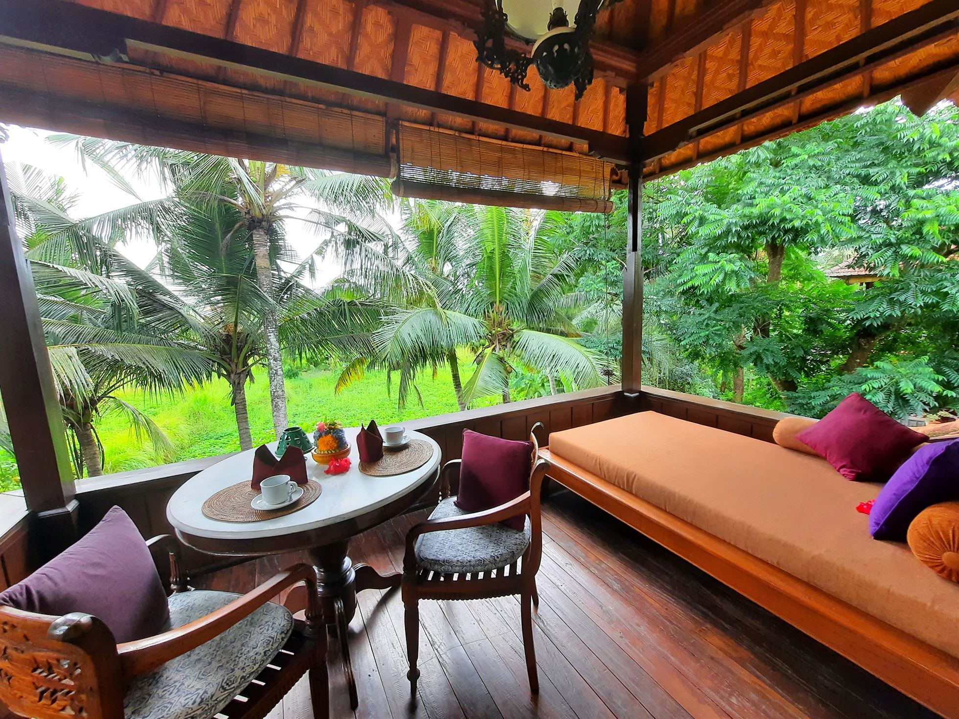 Upper level room with a cozy veranda space. Jalak Bali is the Starling bird indigenous to Bali.